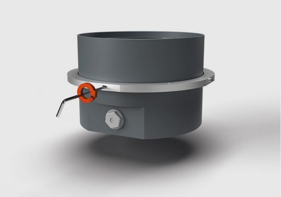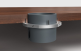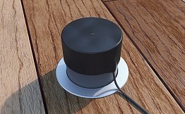 Podzemní zásuvka kulatá se šroubovacím víkem (pomocí klíče). Zabudovaná v úrovni podlahy, z šedého masivního PVC. Povrch víka z hliníku.