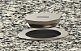 Zabudovaná v úrovni podlahy, z šedého masivního PVC. Povrch víka z hliníku.
